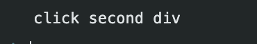 ... <script> ... firstDiv.addEventListener( 'click', function (event) { console.log('click first div'); }, false, ); secondDiv.addEventListener('click', function (event) { event.stopPropagation(); console.log('click second div'); }); </script> ...Event Bubbling 예제라서 하위 element의 이벤트가 먼저 발생하기 때문에 하위 element의 event에서 상위 element의 이벤트 전달을 stopPropagation을 이용하여 막았습니다. 해당 케이스의 결과는 아래와 같습니다.