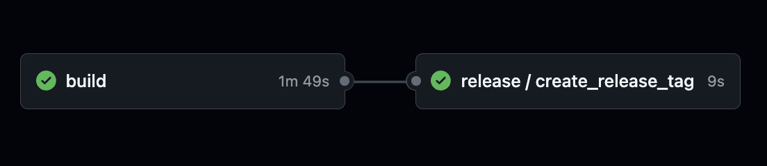 # ./.github/workflows/build.yml name: Service Deploy on: push: branches: - <trigger branch> jobs: build: ... # 작성한 workflow 적용 release: # PRD 환경에서만 동작이 필요할 경우 조건식 추가 if: github.ref == 'refs/heads/<trigger branch>' needs: build uses: ./.github/workflows/auto-tag.yml with: branch: <service name> secrets: inherit배포가 정상적으로 동작한 뒤 Release와 Tag가 생성 되도록 needs: build를 추가하여 build job의 동작이 정상적으로 끝나면 동작하도록 하였습니다. Release와 Tag를 생성하는 workflow에서 GitHub token이 필요하므로 secrets에 접근할 수 있도록 secrets: inherit도 추가해 줍니다.